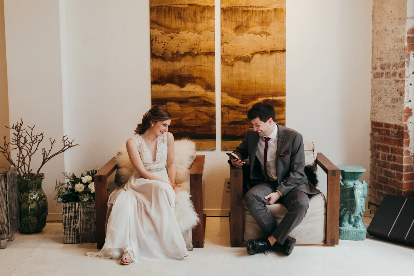 Seattle brides... take notes, because Stephanie and Ethan planned a KILLER celebration. Rain was on the forecast for the entire weekend (and it raiiiiined. HARD). Stephanie booked out this dopeeeeeeeee Airbnb in Pioneer Square to get ready in, which created such a rad and unique environment to do all their portraits+first look since it was too wet to shoot outside. No one was even disappointed with the weather because we had this fun dreamy space to shoot in. I really can't emphasize enough how having a cool environment to get ready in can transform your wedding gallery and also provide a perfect plan b if the weather sucks. It was such a fun space to shoot in - would y'all hate me if I said it was happy it was pouring so we were forced to shoot inside all morning?!?!?!?