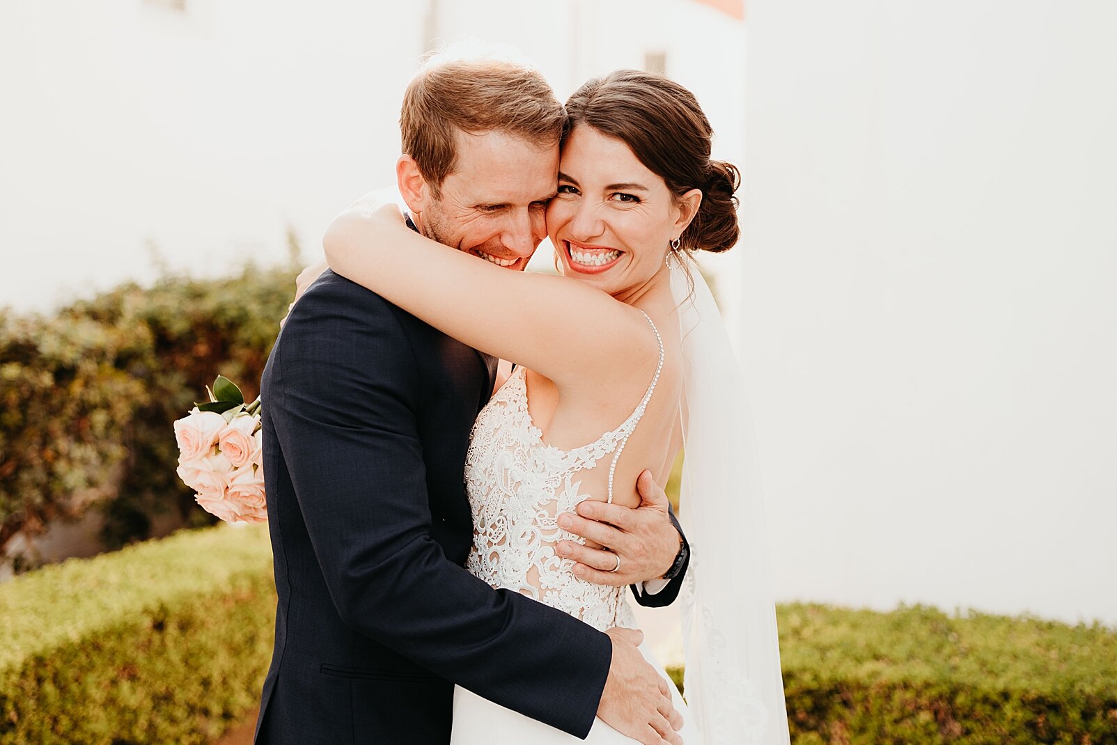Theresa and Brian’s wedding ceremony at Mary Star of the Sea, followed by their reception at the La Jolla Woman’s Club was the perfect fall San Diego day. Mary, Star of the Sea is such a beautiful church, by far my favorite I have ever photographed. All that white gorgeous architecture is my dream and it was filled with such beautiful light - truly such a treat to shoot in there. And all the space right around it (hello white walls and gorgeous light!) allowed for so many photo opportunities and portrait locations. Their ceremony was so sweet - they didn’t do a first look before the ceremony, and seeing Brian’s face light up with his contagious smile when Theresa walked into the church was just the best. For their reception, La Jolla Woman’s Club was perfect. In their own words, Theresa loved “the romantic feeling you get when you are there. The gardens feel intimate and lush and you get this amazing coastal breeze off the coastline. The building is also on the Historic Landmark List for San Diego, so there's a quaint feeling to it, like you are in a different time period and I love that. The green colors pop when you look around.” Brian loved “the outdoor area and how it provides a variety of sceneries all in one location. The bog oak tree provides a Midwestern feel, the skyscape with the lawn provides a clean, elegant look and the cocktail area invites a fun energy.” All of that really comes through the images which is so satisfying! It was such a high-energy celebration and super fun party - everything they hoped for. I personally also loved capturing Theresa getting dressed and ready in her own home - she had this gorgeous sunroom that from a photographers perspective couldn’t have been better * heart eyes *. And being home and having their pup around for getting-ready was such a special way to start the day… then their adorable doodle met us after the ceremony for photos and was an excellent model!